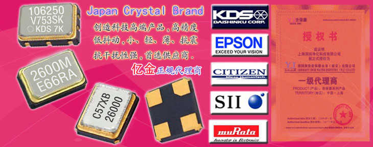 億金電子代理進(jìn)口晶振品牌,京瓷晶振,CTS晶振,NDK晶振,KDS石英晶振,TXC晶振,鴻星晶振等.所代理進(jìn)口晶振品牌常用型號頻點(diǎn)均有現(xiàn)貨,所代理有源晶振,石英晶體振蕩器,具有不同的電源電壓選擇以及不同的輸出類型.歡迎新老客戶咨詢億金電子,可免費(fèi)提供晶振樣品以及專業(yè)的技術(shù)指導(dǎo)服務(wù).