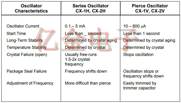 石英晶振或晶體振蕩器類型的選擇主要取決于產(chǎn)品對于晶振性能要求.表2總結(jié)了穿孔和穿孔的性能特征系列振蕩器.CX-1V水晶有比CX-1H更高的Q值因為它密封在真空包裝中.該CX-1H晶體約為3至5時間更高的運動阻力(Q值更低)因為它是密封的氣壓.