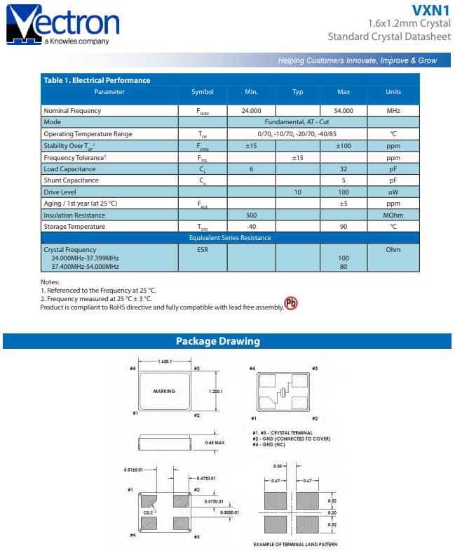 更多>>維管晶振,VXN1晶振,1612小體積晶振