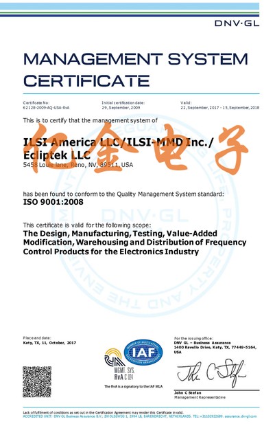 日蝕晶振獲2018年ISO9001國(guó)際質(zhì)量保證書(shū)
