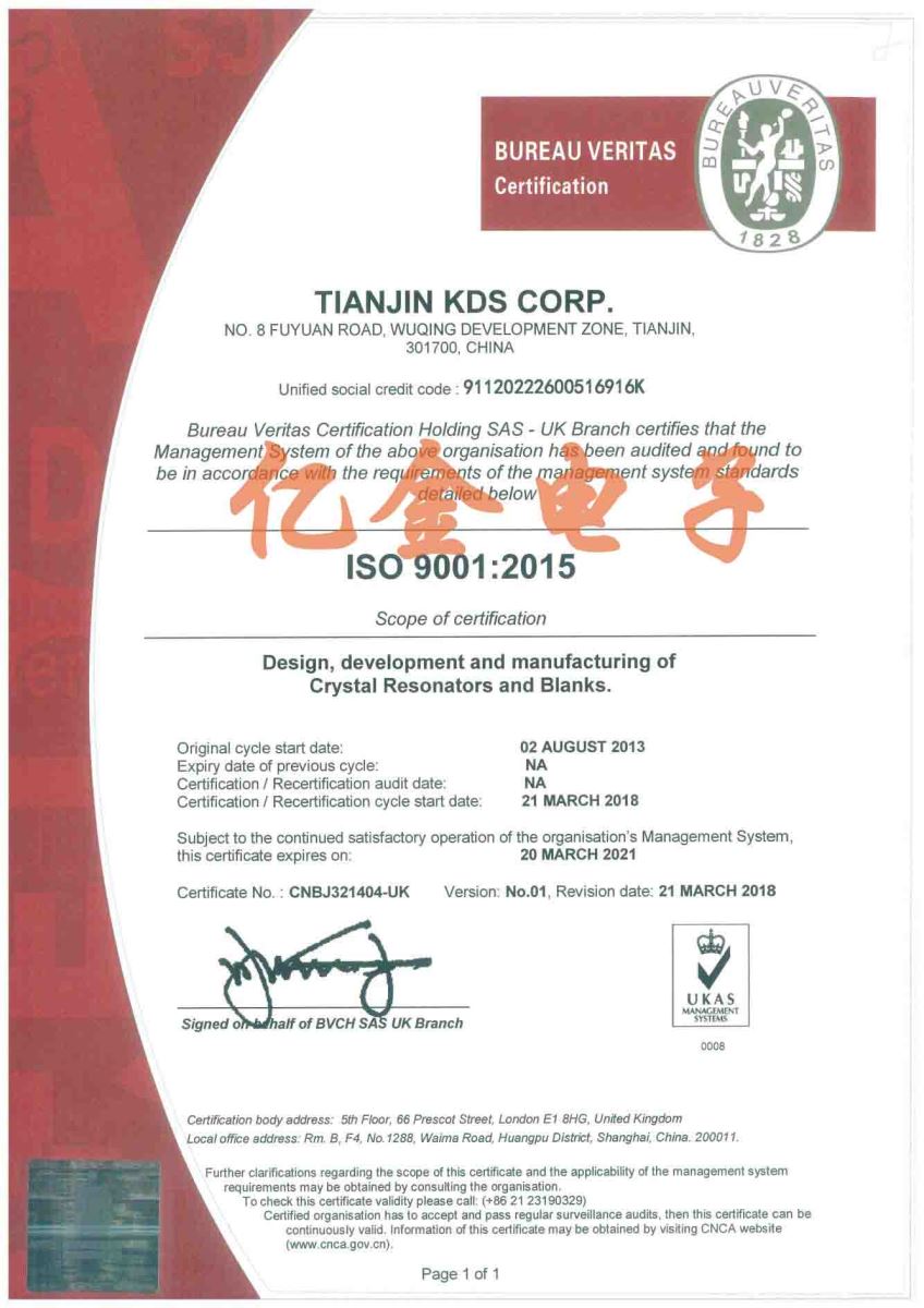 此文關(guān)鍵字: KDS晶振KDS國(guó)際認(rèn)證書(shū)
