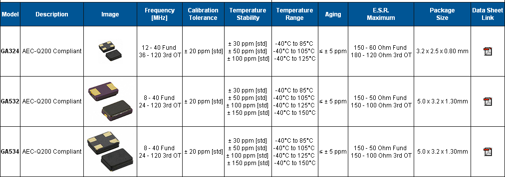 | 頻率公差@ 25°C | ±10ppm, ±15ppm, ±20 ppm, ±30 ppm, ±50 ppm | ||||