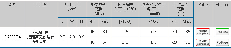 | 頻率公差 | Max. ±25 ×10-6 | Max. ±50 ×10-6 | Max. ±100 ×10-6 | |