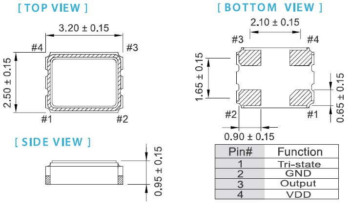 • 尺寸:3.2mm*2.5mm*0.95mm