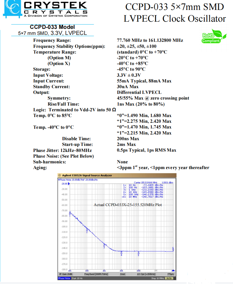 | CCPD-033X-25-161.1328 | Crystek晶振 | CCPD-033 | XO (Standard) | 161.1328MHz | ±25ppm |