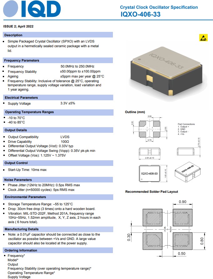 超小型LVDS晶振IQXO-406-33用于光纖通道設(shè)備