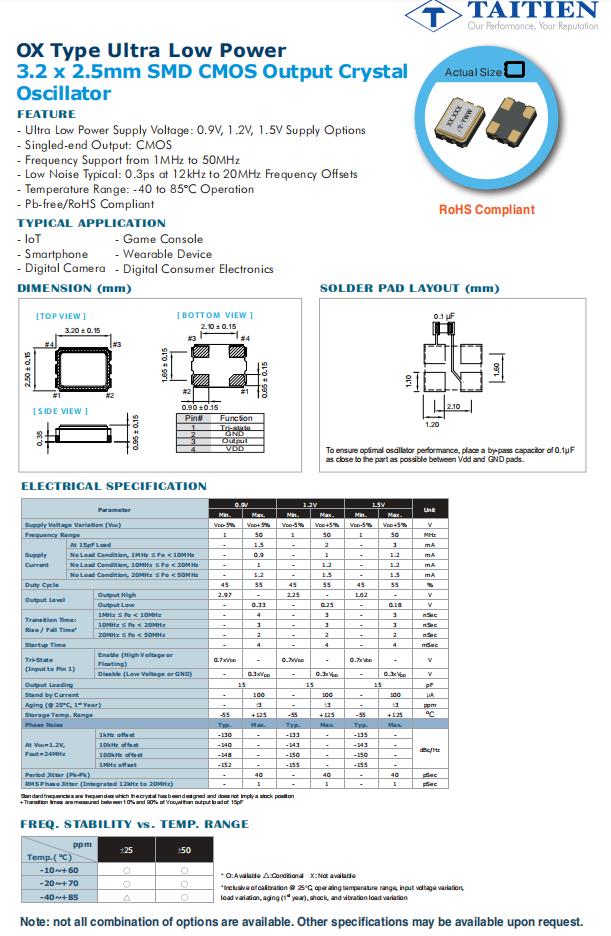 | OXETDLJANF-50.000000 | 泰藝晶振 | OX | XO (Standard) | 50MHz | 2.8V |