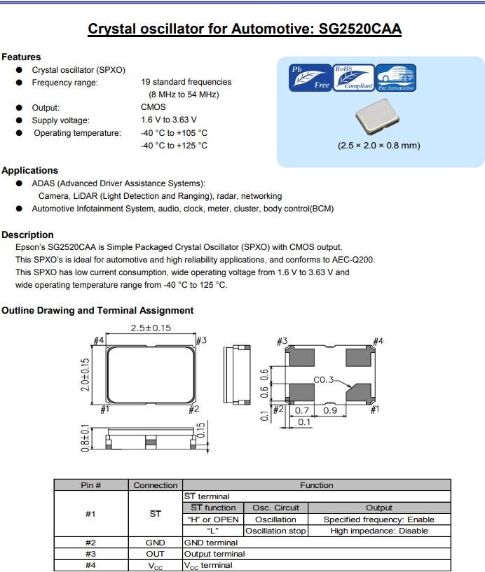愛(ài)普生SG2520CAA具有高響應(yīng)速度的2520封裝汽車(chē)級(jí)晶振,X1G005951001216,CMOS輸出晶體振蕩器|