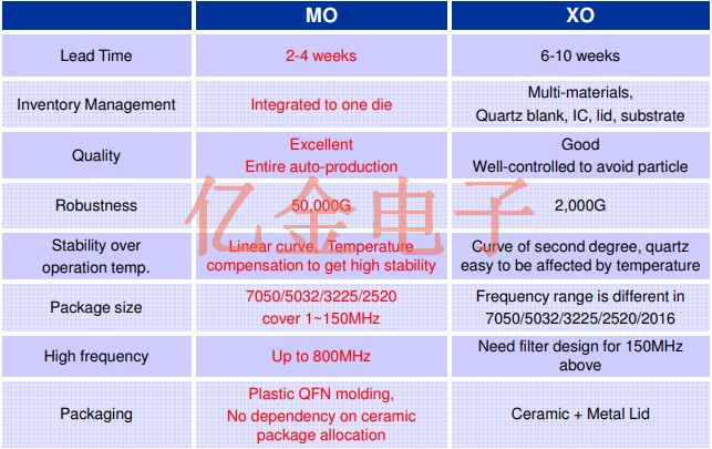 什么是MO?MO代表“MEMS振蕩器”.基于MEMS(微電子機(jī)械系統(tǒng))的定時(shí)解決方案,擁有良好的頻率穩(wěn)定性能.臺(tái)灣晶技MEMS振蕩器與XO振蕩器的BOM結(jié)構(gòu)不同