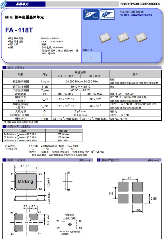| X1E000251007100 | 1.6x1.2x0.35mm | FA-118T | 40.000000MHz | 12pF | +/-8ppm | +/-10ppm | -30to+85°C |