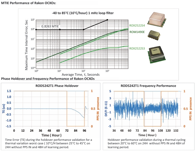 Rakon 對其 OCXO 的保持相位運動性能進行了擴展測試,并提供在 24 小時內在整個溫度范圍內具有幾微秒保持性能的器件。Rakon 擁有廣泛的 OCXO,可在 8 至 24 小時內經濟地滿足 1 至 10 μs 的保持要求。